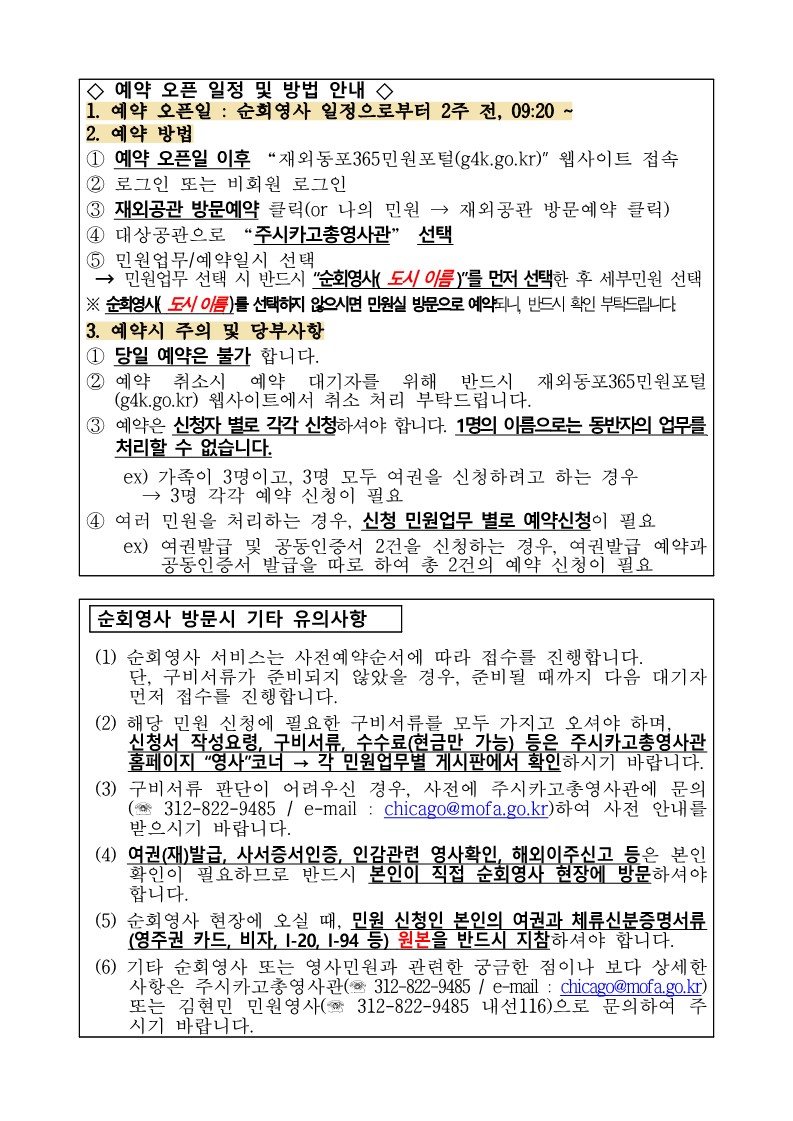2025.3.14(금) 세인트루이스 순회영사 공지 - 예약은 2025.2.28(금) 09:20분 부터